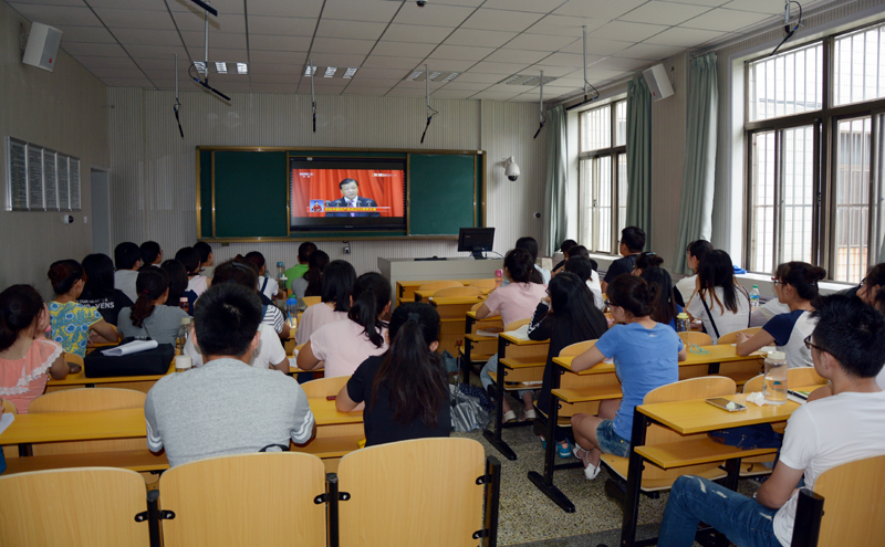 学校高度重视庆祝大会的收听收看工作,学校领导带头在会议室集中收看了大会直播盛况。各单位结合工作实际,采取集中与分散相结合的形式,通过电视、网络等媒体,认真组织党员干部和师生员工收听收看;有的单位还紧密结合“两学一做”学习教育、结合各自的学科专业特色,在大会开始前开展了集中党课、重温入党誓词等形式多样的学习教育。