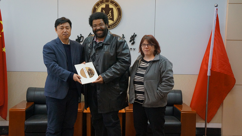石百德此行是在我校特聘教授、洛杉矶罗耀拉大学哲学系教授王蓉蓉10月14日访问我校时与校长傅永聚会商约定的。参加会见的有研究生处处长李兆祥、副处长尹树林,国际交流合作处副处长邢春雷等。稍晚,国际交流合作处处长梁美玲也会见了石百德。