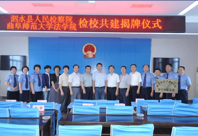 7月17日上午,我校法学院和泗水县检察院校检共建活动在泗水举行,学校纪委书记郭辰夫、法学院负责人,济宁市人民检察院副检察长孔凡学、济宁市人民检察院研究室主任陈玲,泗水县委常委、政法委书记王庆峰,泗水县检察院党组书记、检察长王岗,党组副书记、副检察长韩国红等出席仪式。郭辰夫与孔凡学为半岛在线体育网法学院教学科研基地揭牌。