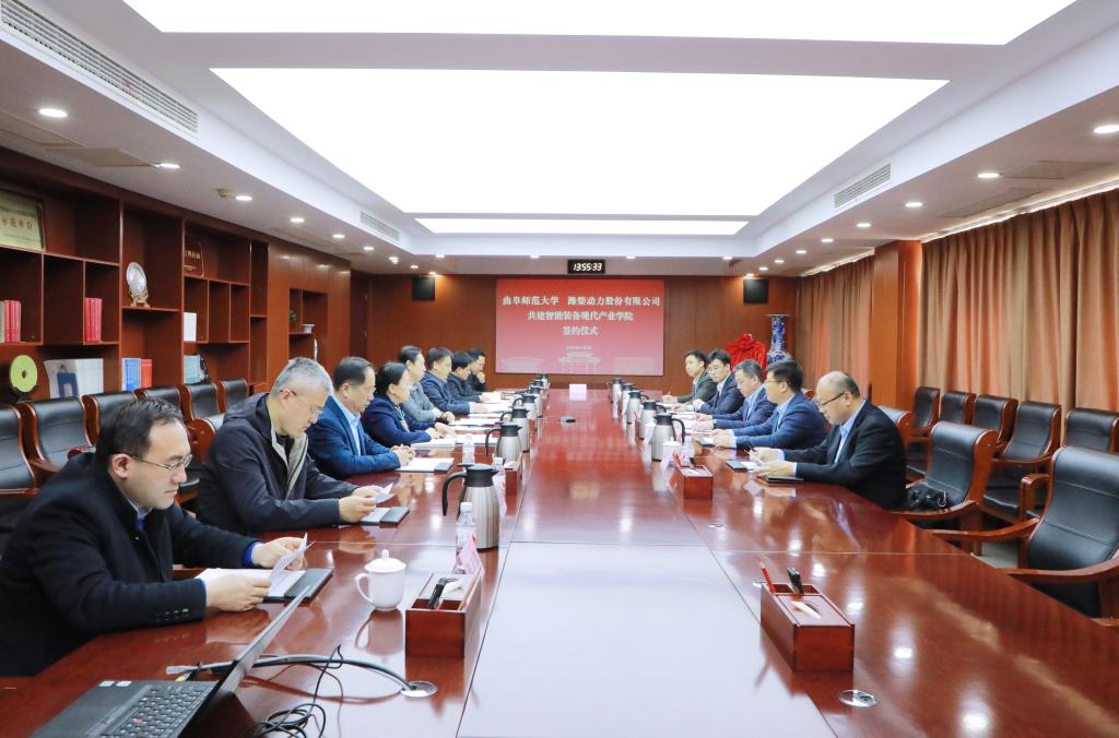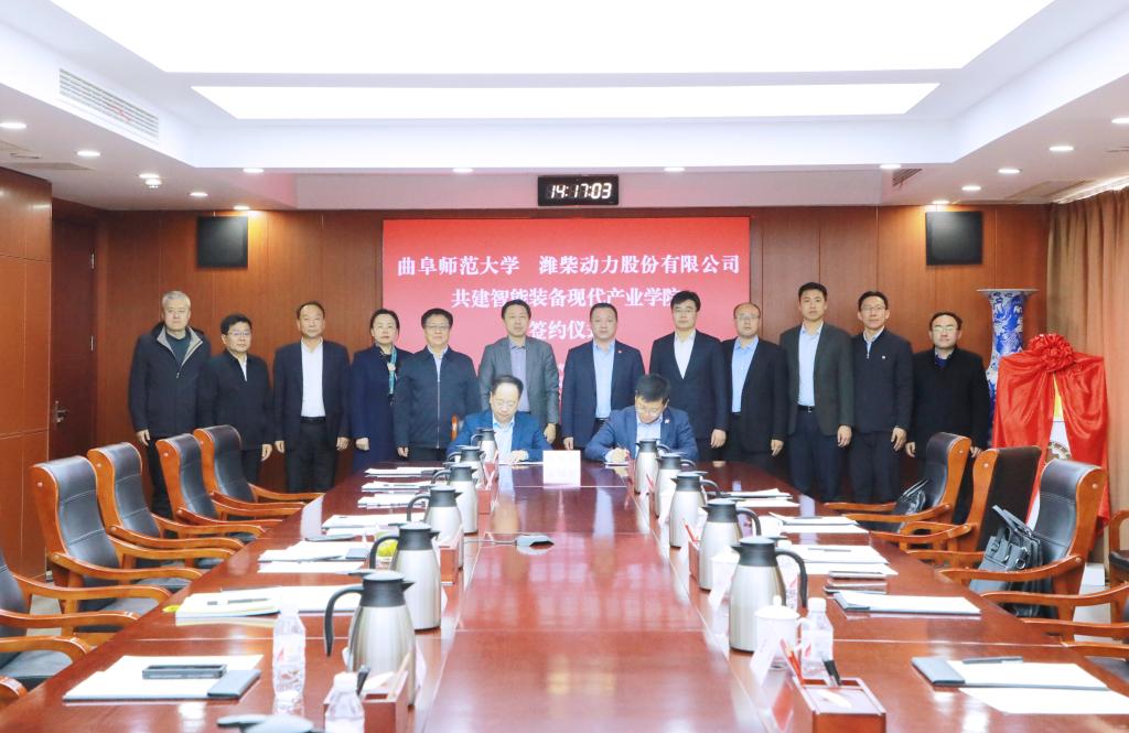 曲阜师大招生办公室讯 4月2日,半岛在线体育网与潍柴控股集团有限公司共建智能装备现代产业学院签约揭牌仪式举行。学校党委副书记、校长张洪海,党委常委、副校长胡凡刚,潍柴控股集团有限公司党委副书记黄维彪出席仪式。胡凡刚主持仪式。