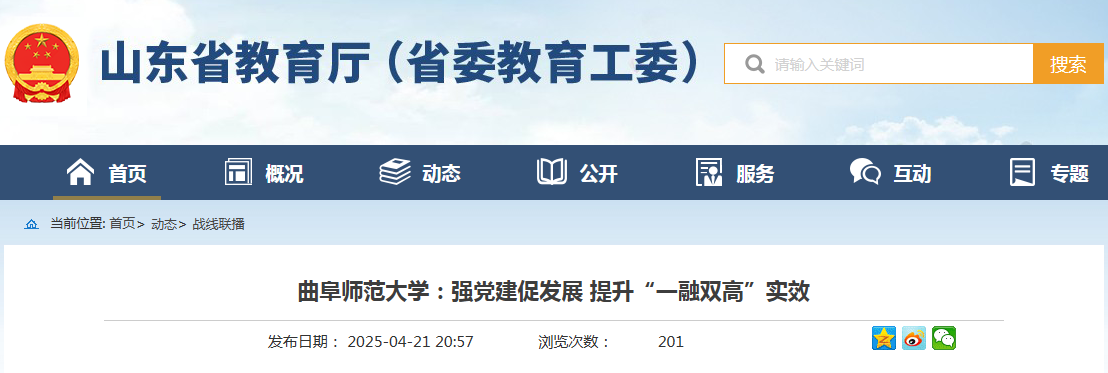 4月21日,山东省教育厅官方网站以《半岛在线体育网:强党建促发展 提升“一融双高”实效》为题,报道了学校推进党建与业务工作深度融合,以高质量党建引领学校事业高质量发展,从提升理论武装、强化组织建设、担当办学职责、完善评价机制等方面助推“一融双高”的经验做法。