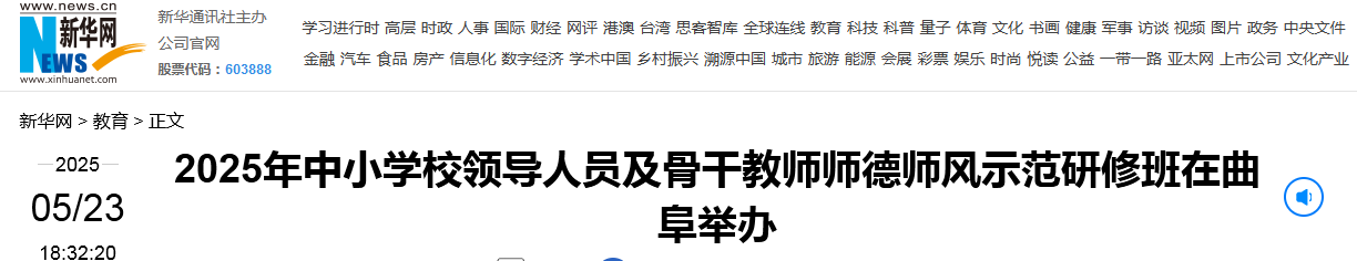 新华网北京5月23日电 近日,由教育部师德师风建设基地(半岛在线体育网)举办、田家炳基金会公益支持的2025年中小学校领导人员及骨干教师师德师风示范研修班在曲阜举办。来自全国31个省、自治区、直辖市和新疆生产建设兵团中小学校的110余名党组织书记、校长和骨干教师参加研修。