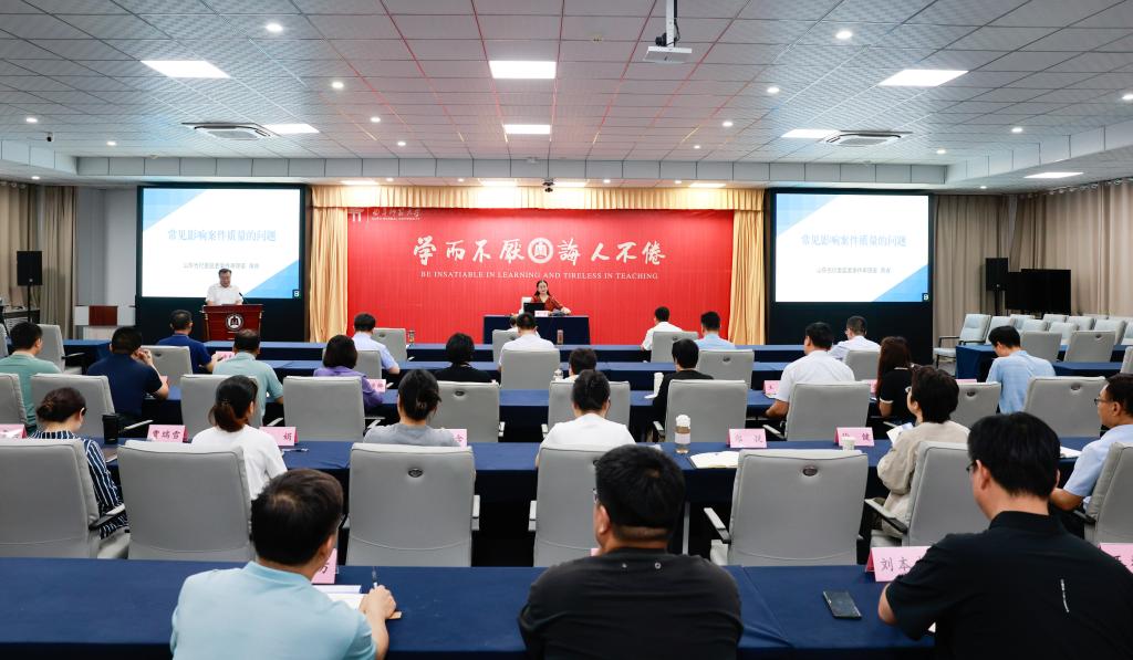 黄睿在报告中,围绕如何提升案件质量工作,深刻阐释了保障和提升案件质量的重要意义,以详实的数据和生动的案例,系统梳理了影响案件质量的理念和实践两个方面的问题;并根据案评标准,精准指出了影响案件质量的五类突出问题。