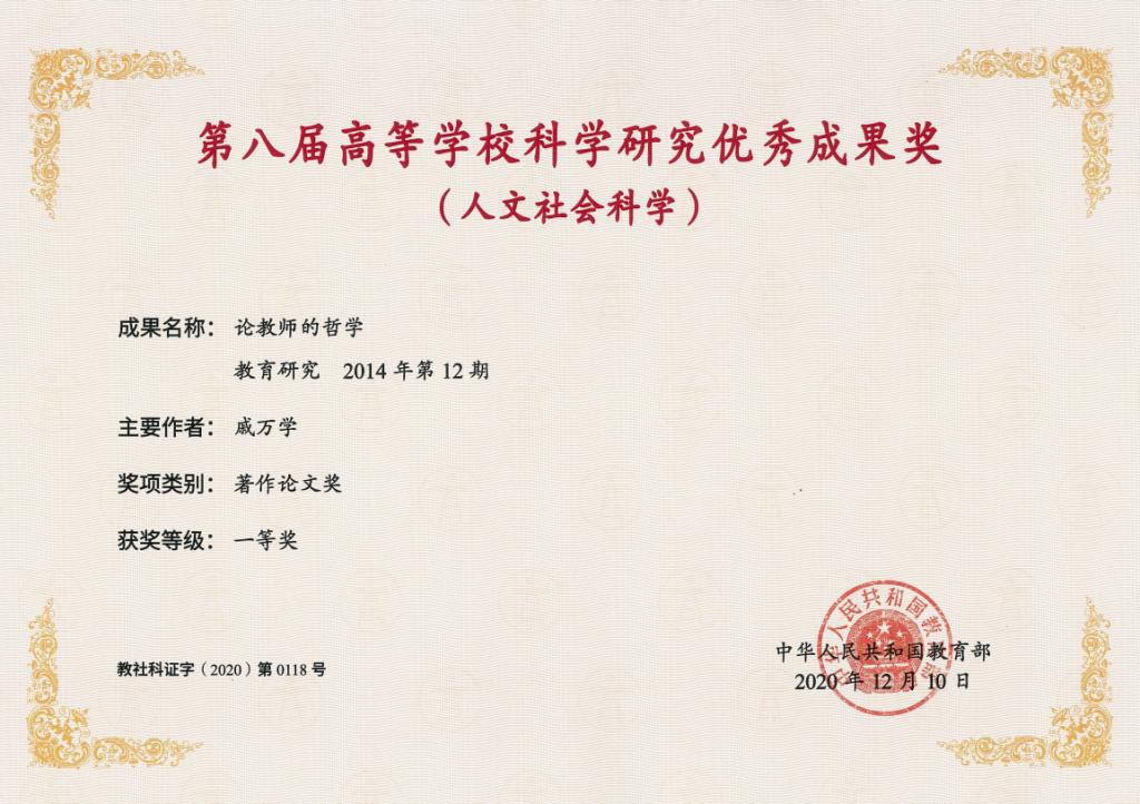 教育学部有一面“荣誉墙”,见证着曲园教育学人的“光荣与梦想”,其中2024年7月的荣誉时刻尤为耀眼——教育部第九届高等学校科学研究优秀成果奖(人文社会科学)一等奖1项、二等奖1项、三等奖1项,这也创造了连续两届获得教育部人文社科优秀成果一等奖的全省新纪录。