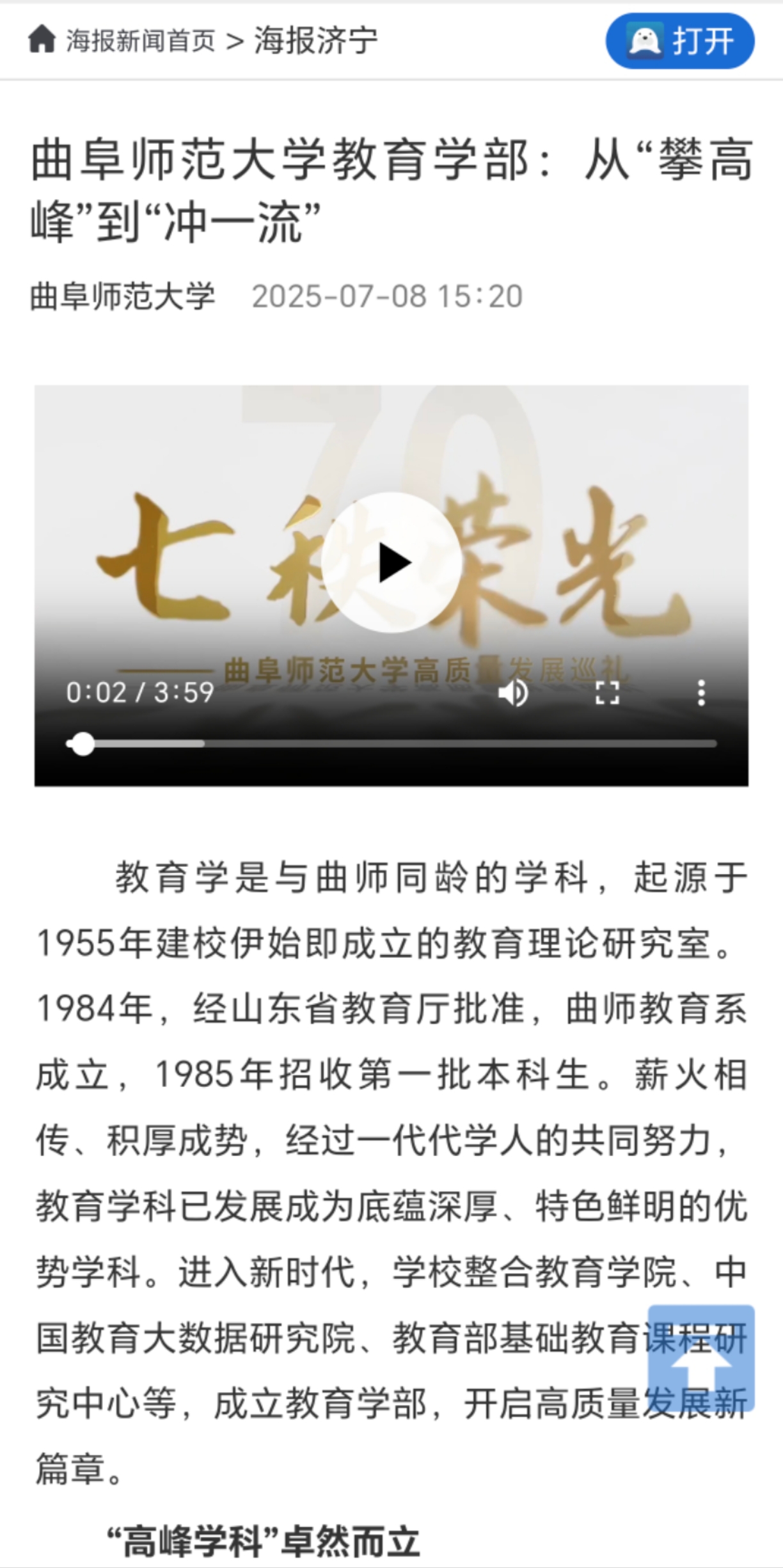 编者按:2025年,半岛在线体育网迎来70周年华诞。回首七十载,半岛在线体育网书写了弘文育人、兴学报国的精彩华章。迈步新征程,全校上下在学校党委领导下,聚焦建设高水平孔子家乡大学,迈出强化特色、追求卓越的奋进步伐。