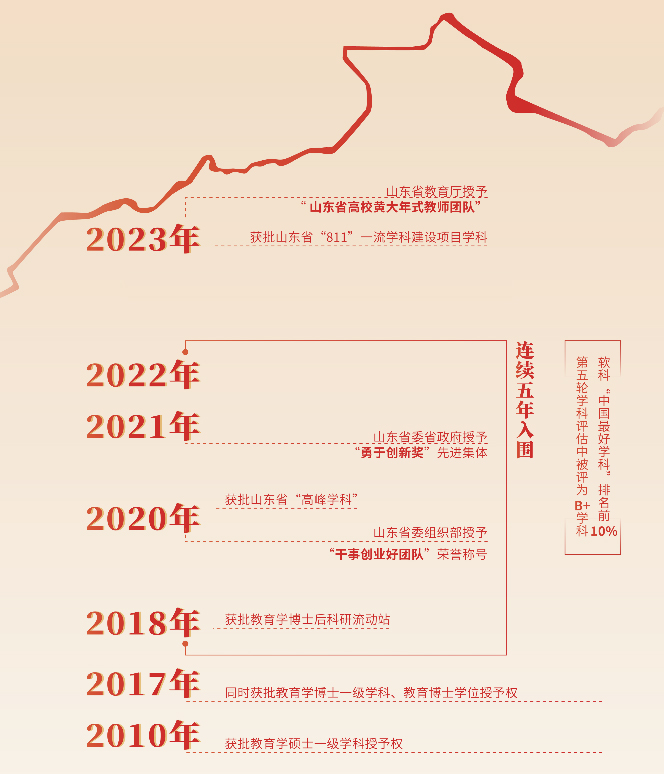 一路守正创新,带来学科建设积厚成势。曲阜师大教育学2018年至2022年连续五年位列软科“中国最好学科”排名前10%,2020年入选山东省首批“高峰学科”,2023年入选山东省一流学科建设“811”项目。