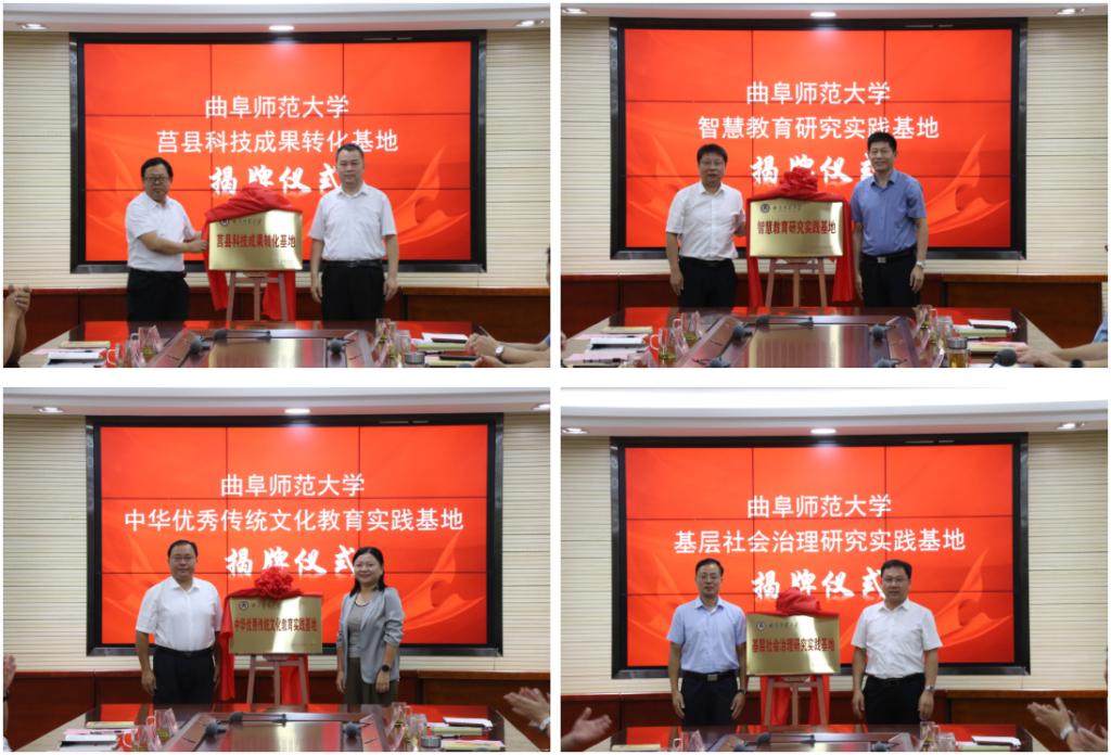 仪式上,校地双方共同为半岛在线体育网莒县科技成果转化基地、半岛在线体育网中华优秀传统文化教育实践基地、半岛在线体育网智慧教育研究实践基地、半岛在线体育网基层社会治理研究实践基地揭牌。