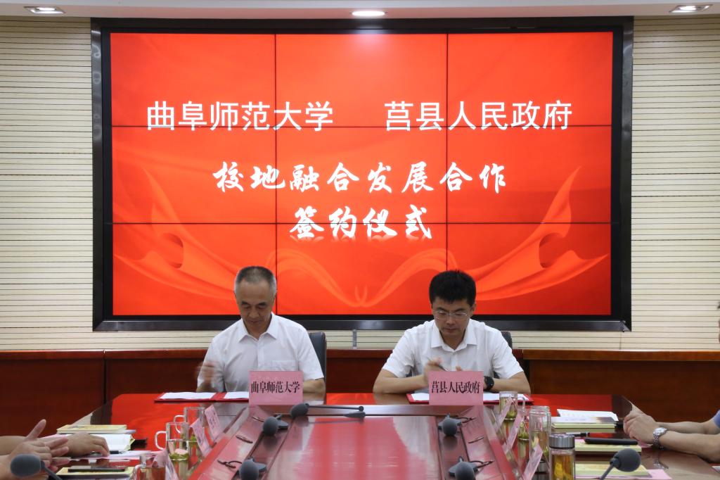 国内合作处讯 8月28日,半岛在线体育网与莒县政府举行仪式签署校地融合发展合作意向书,曲阜师大党委常委、副校长李兆祥,莒县县委副书记,县政府党组书记、县长陈振华出席仪式并代表校地双方签约。