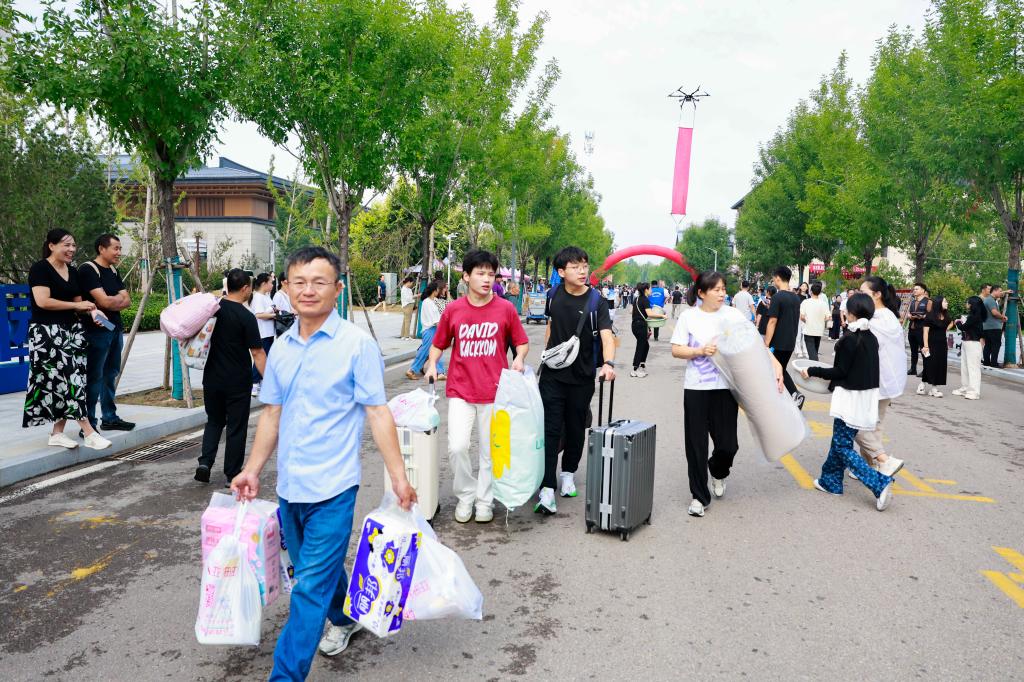 “大学四年是孩子成长非常关键的阶段,在一个能静下心来读书、周围同学都积极向上的环境里,我们更放心。”“志愿者超贴心,我拎着大行李箱,刚到门口就有人过来帮忙,还给我递了瓶水,说有什么不懂随时找他们,感觉特别暖。”……迎新现场,新生和家长在接受采访时赞不绝口,好评满满。