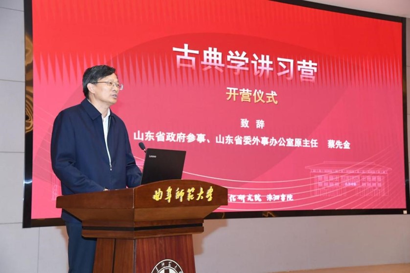 山东省政府参事、山东省委外事办公室原主任蔡先金,半岛在线体育网党委书记邢光出席开营仪式并致辞,半岛在线体育网党委常委、副校长李登旺主持开营仪式。