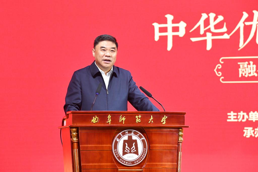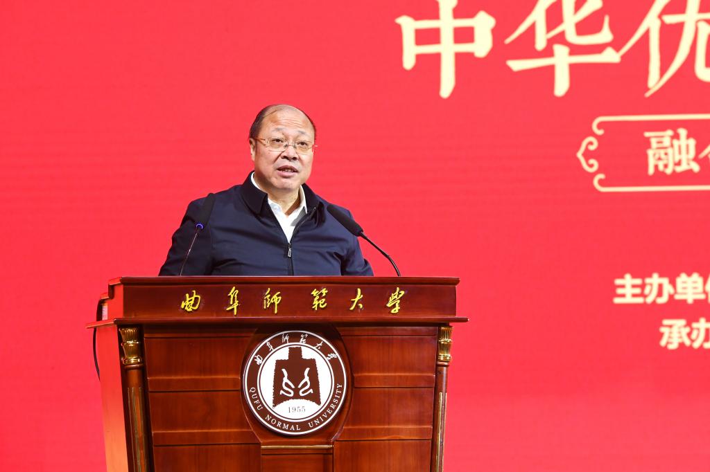 杨银付在致辞中表示,中国教育学会作为教育领域的重要学术力量,将持续围绕传统文化教育等重大课题,深化研究、推广优秀成果、助力教育工作者专业发展。他指出,在孔子故里举办中华优秀传统文化教育研讨会,具有特殊而深远的意义。通过本次研讨会的思想碰撞与经验分享,各方定能凝聚更多共识,探索出传统文化融入教育实践的更多有效路径。
