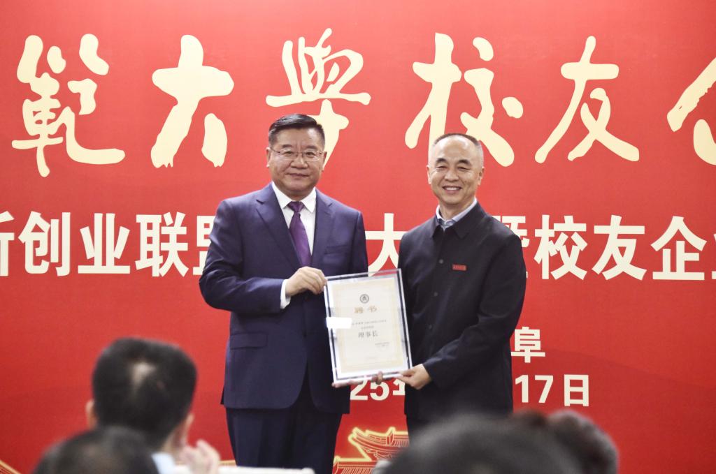 李兆祥为理事会成员颁发聘书,并向近期为捐赠母校的地方校友会代表颁发了捐赠证书。