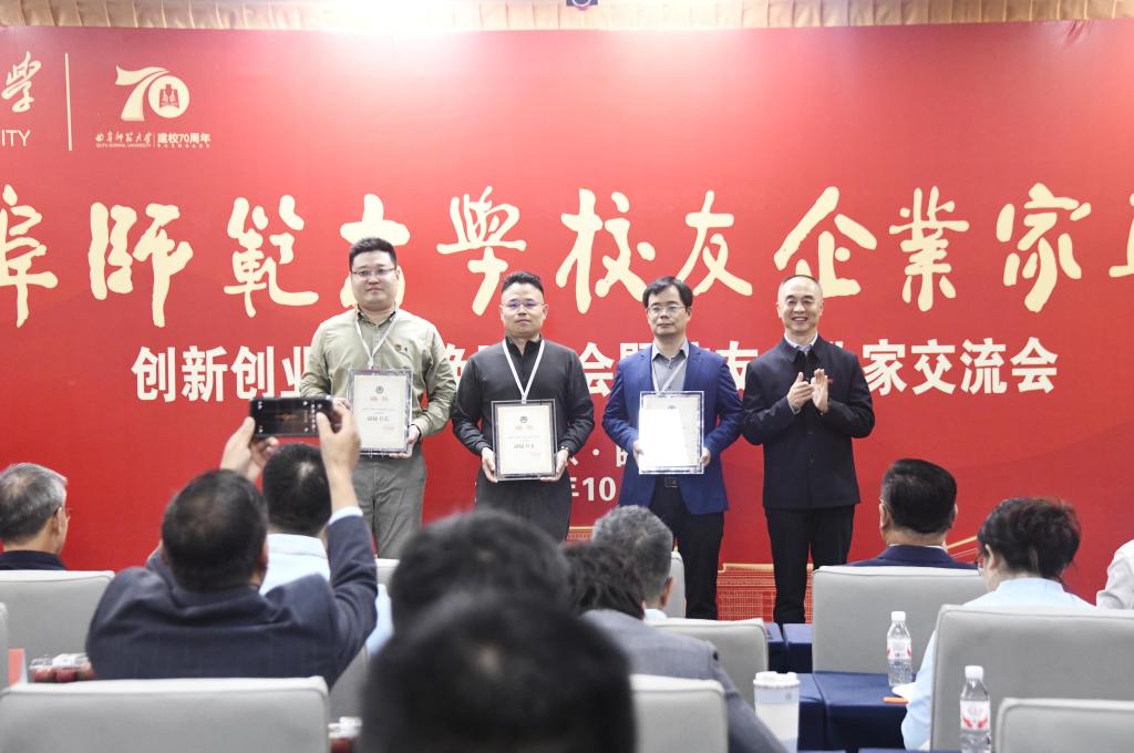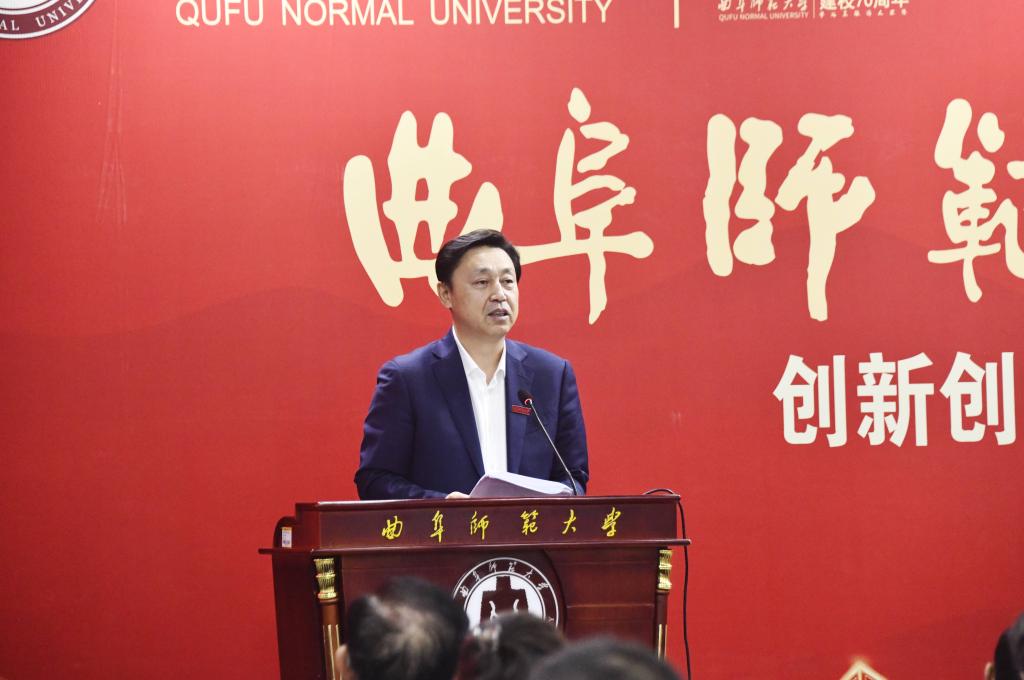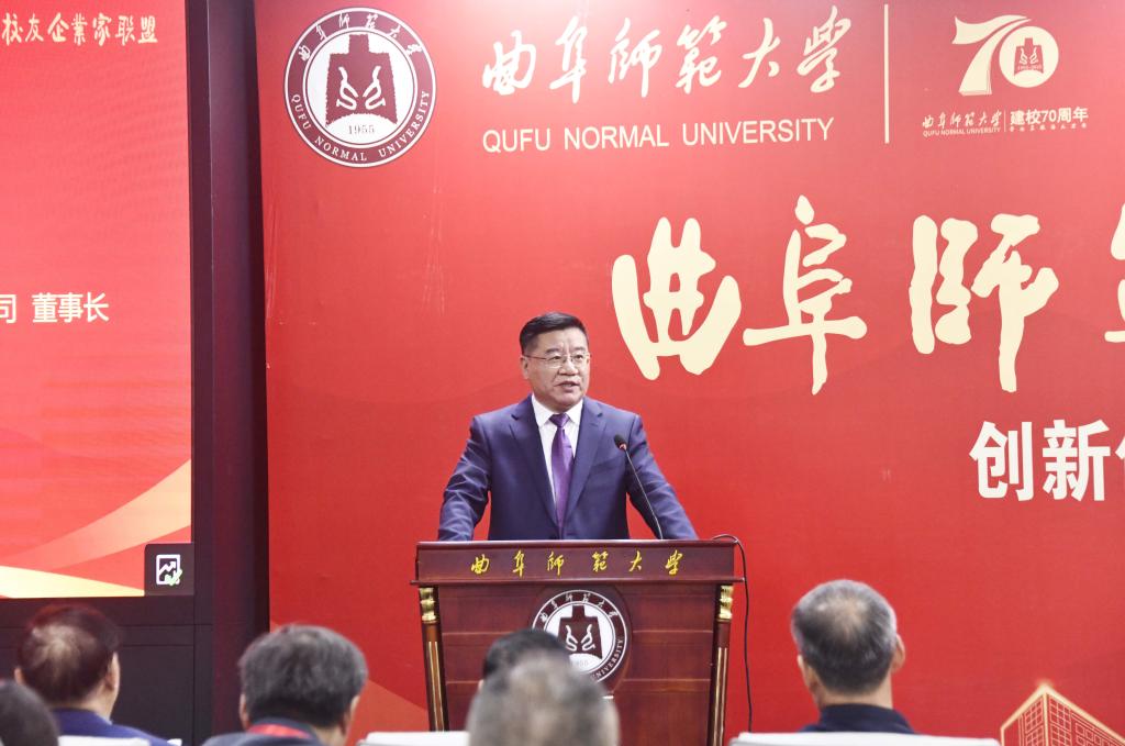 在随后举行的校友企业家交流会上,鹿传欣、窦大海、周军、孙赫宏、马庆、刘德明6位校友结合自身实践分享了创业发展经历与心得, 济宁市商务局负责同志应邀出席并作了济宁市产业政策宣讲。