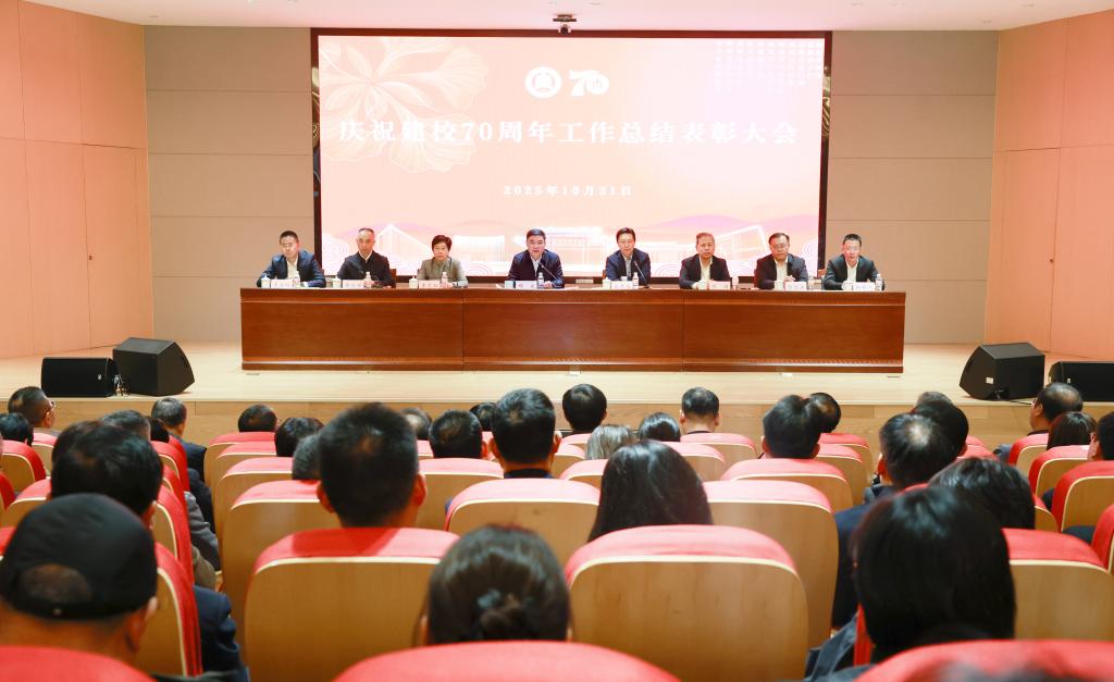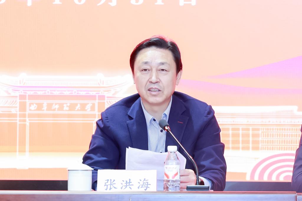 张洪海在主持大会时指出,校庆盛典全面展现了曲园人团结拼搏的昂扬风貌,深刻诠释了学校深厚的文化积淀与蓬勃的发展势头。成绩的取得,凝聚着每一位师生员工的智慧与汗水,饱含着广大校友的深情厚谊,也承载着社会各界的广泛期待。这既是对七十年办学历程的辉煌献礼,更是我们迈向更高目标的崭新起点。当前,我们正处在全面推进教育强国建设的关键时期,肩负着收官“十四五”、谋划“十五五”的历史重任。站在新的起点上,我们要牢记“教育强国,曲师何为”的时代之问,传承弘文育人的初心,扛起兴学报国的使命,以更加饱满的热情、更加昂扬的斗志、更加务实的作风,投入到学校的发展建设中去,在培育时代新人、服务国家战略、传承优秀文化的征程上,共同谱写曲师人的辉煌新篇。