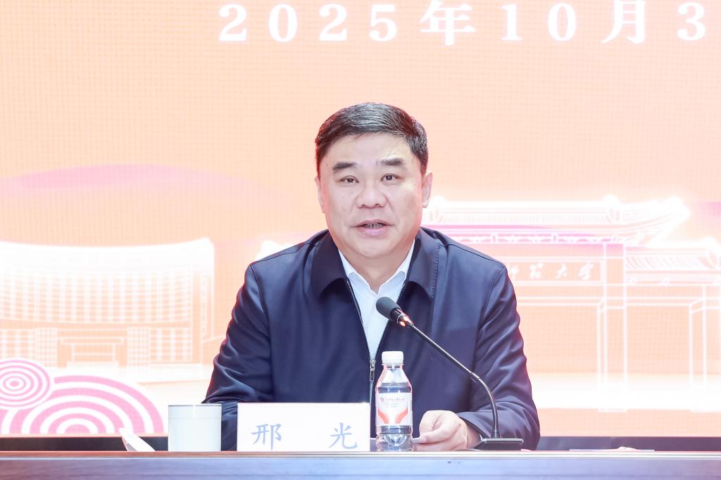 邢光指出,这次校庆是凝聚力量开启新征程的豪迈誓师,让我们在团结奋斗中激发了再建新功的昂扬斗志。校庆期间,我们共同见证了全校上下同心同德、众志成城的强大凝聚力。从学校领导班子率先垂范到各职能部门密切配合,从各学院精心组织到师生员工全情投入,从离退休老同志建言献策到青年学子志愿服务,无不充分展现出曲园人“心往一处想、劲往一处使”的团结精神。众多校友的重返母校、全力支持,众多兄弟院校、社会各界朋友的鼎力相助、共襄盛举。这一切汇聚成的强大合力,构筑起学校事业发展的坚实基础,也成为我们直面挑战、开创未来的力量之源。