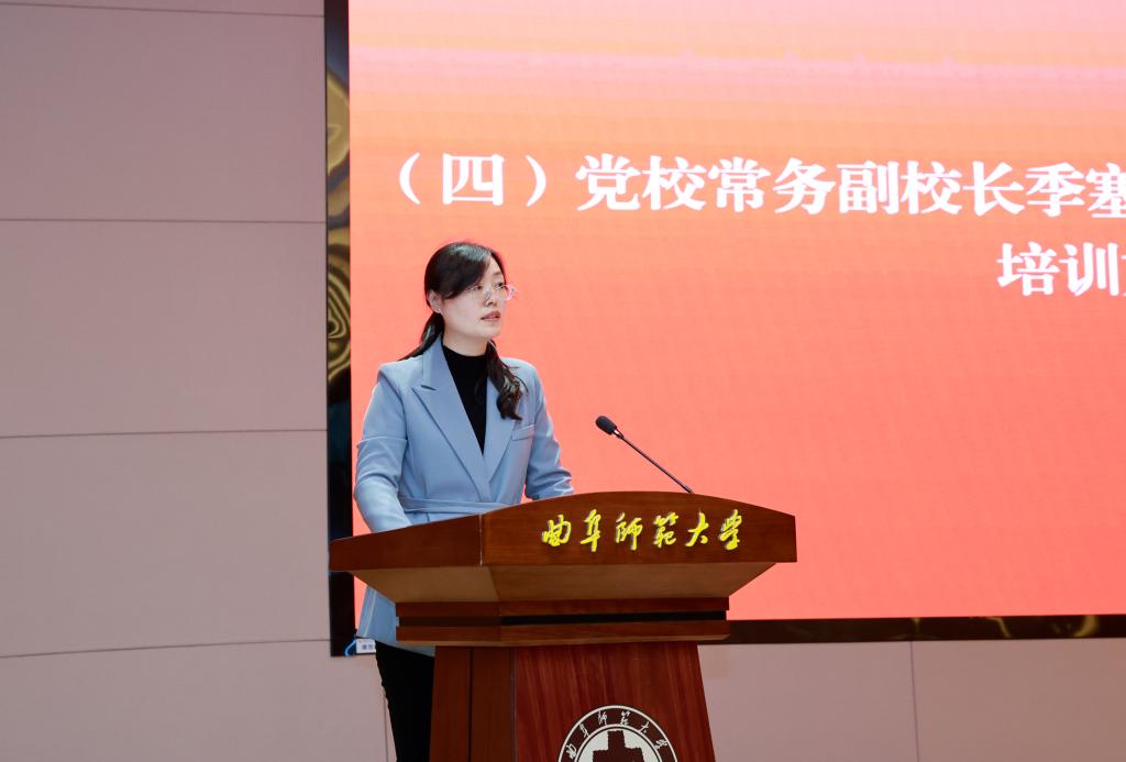 曲阜师大团委讯 11月4日,曲阜师大2025-2026学年青年马克思主义者培养工程大学生骨干培训班暨第35期团校开班仪式举行,学校党委副书记刘涛为培训班授旗并讲授“青马”第一课。