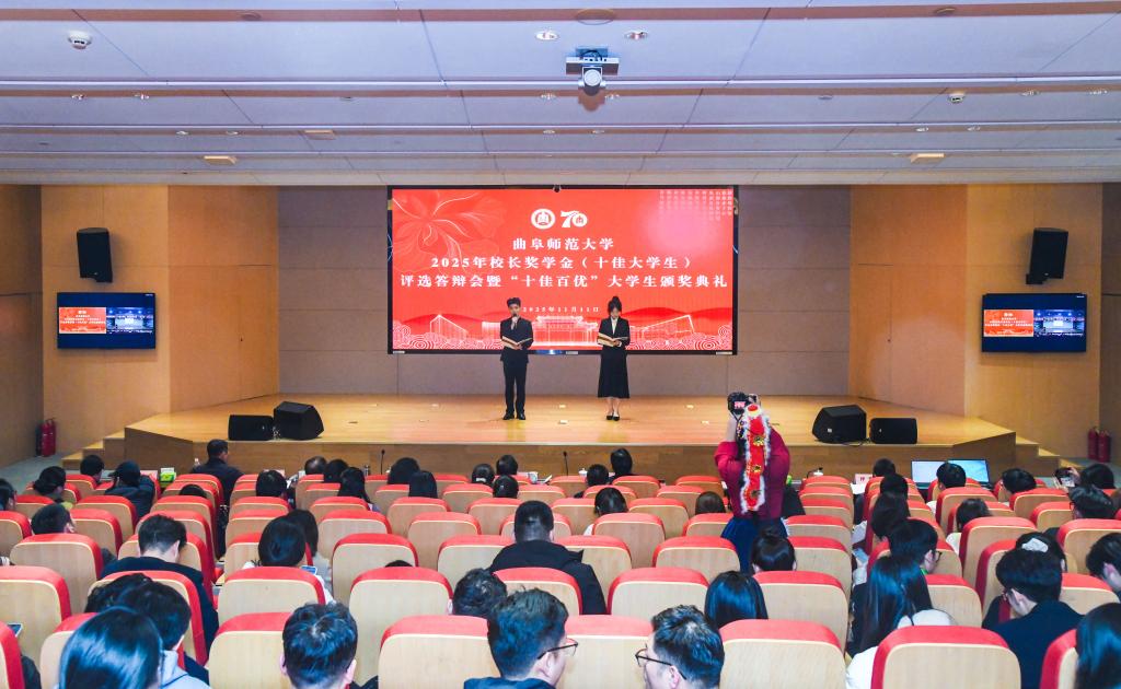 曲阜师大学生工作处讯 11月11日,半岛在线体育网 2025年校长奖学金(十佳大学生)评选答辩会暨“十佳百优”大学生颁奖典礼在两校区同步举行。学校党委常委、副校长胡凡刚,党委常委、副校长陈刚出席活动并为获得校长奖学金的学生颁奖。