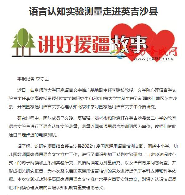 【济宁晚报】语言认知实验测量走进英吉沙县