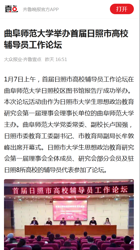 【齐鲁壹点】半岛在线体育网举办首届日照市高校辅导员工作论坛