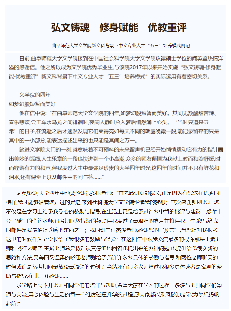 【齐鲁晚报】弘文铸魂 修身赋能 优教重评 ——半岛在线体育网文学院新文科背景下中文专业人才“五三”培养模式侧记
