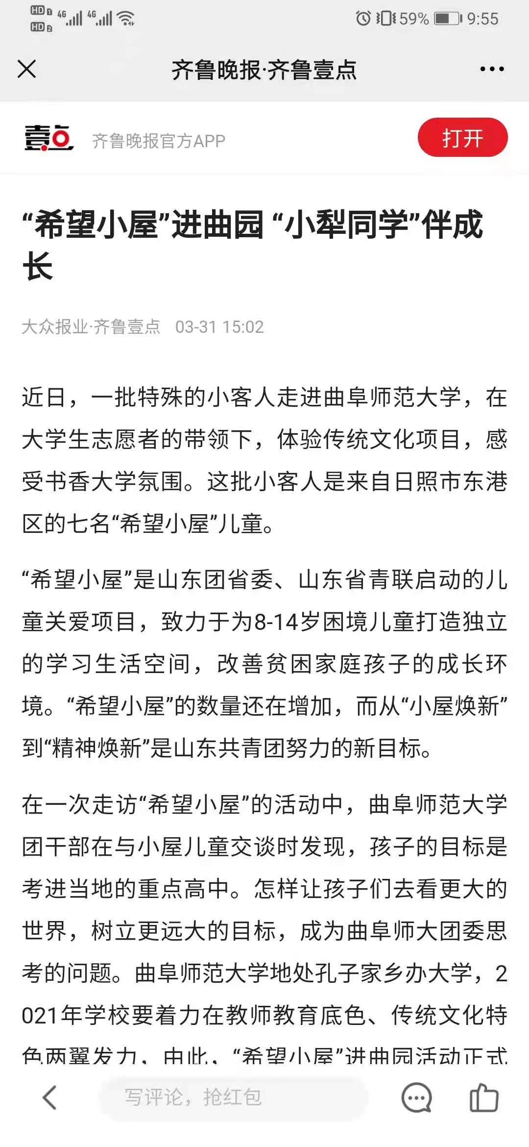 齐鲁壹点:“希望小屋”进曲阜师大,“小犁同学”伴成长