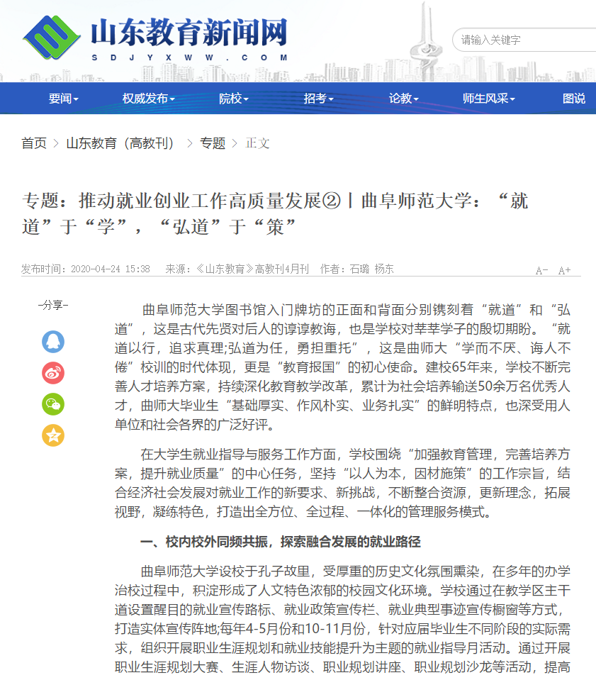 山东教育新闻:半岛在线体育网:推动就业创业工作高质量发展②