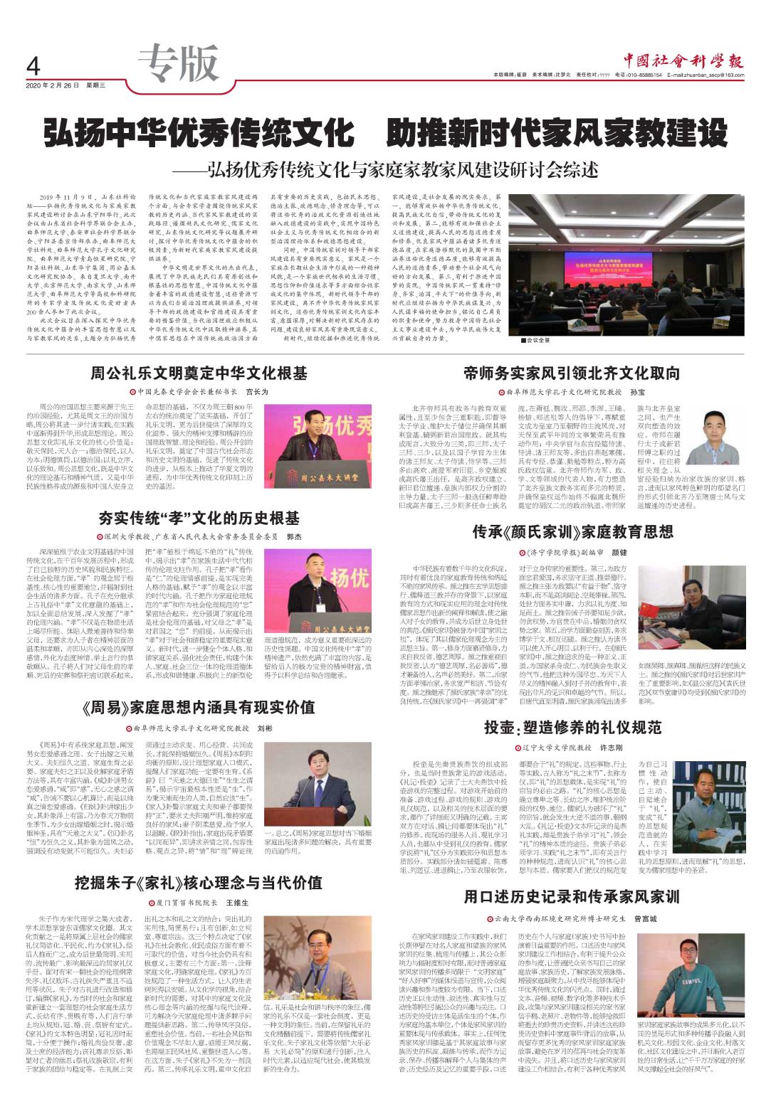 本次会议的优秀论文观点摘要,经山东省社科联推荐,于2020年2月26日在《中国社会科学报》专版报道,引起社会和学术界的广泛关注,产生了良好的反响。我校孔子文化研究院刘彬教授《〈周易〉家庭思想内涵具有现实价值》、孙宝教授《帝师务实家风引领北齐文化取向》入选优秀论文,获得推荐发表。