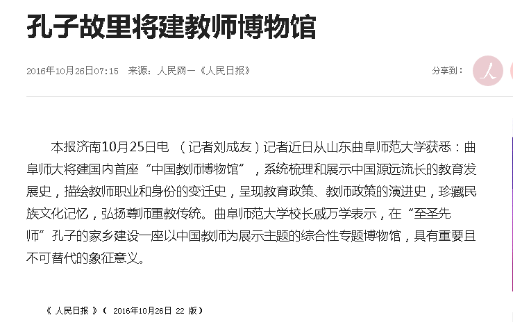 人民日报:孔子故里将建中国教师博物馆