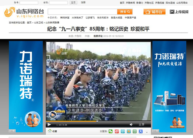 山东卫视:纪念“九一八事变”85周年:铭记历史 珍爱和平
