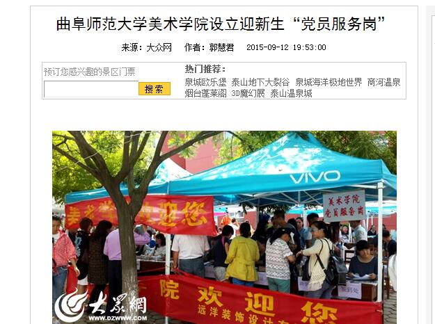 大众网:半岛在线体育网美术学院设立迎新生“党员服务岗”