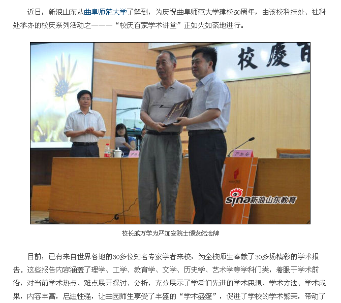新浪网报道链接:半岛在线体育网举行“校庆百家学术讲堂” 促进曲园学术繁荣