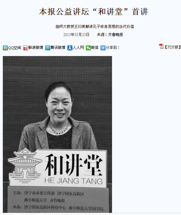 齐鲁晚报:“和讲堂”:曲师大教授王曰美解读孔子修身思想的当代价值