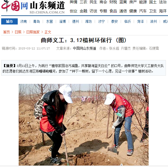 中国网:曲师义工3.12植树环保行