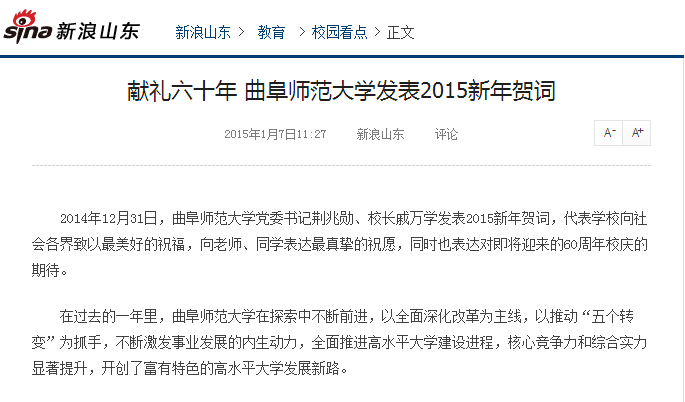 新浪网:献礼六十年 半岛在线体育网发表2015新年贺词