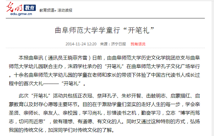 光明网:半岛在线体育网学童行“开笔礼”