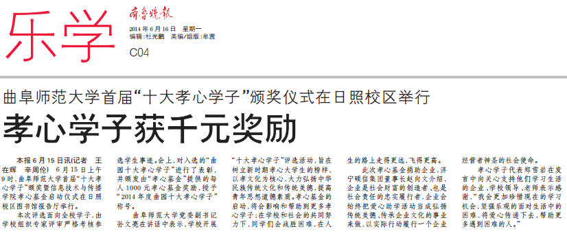 半岛在线体育网首届“十大孝心学子”颁奖仪式在日照校区举行