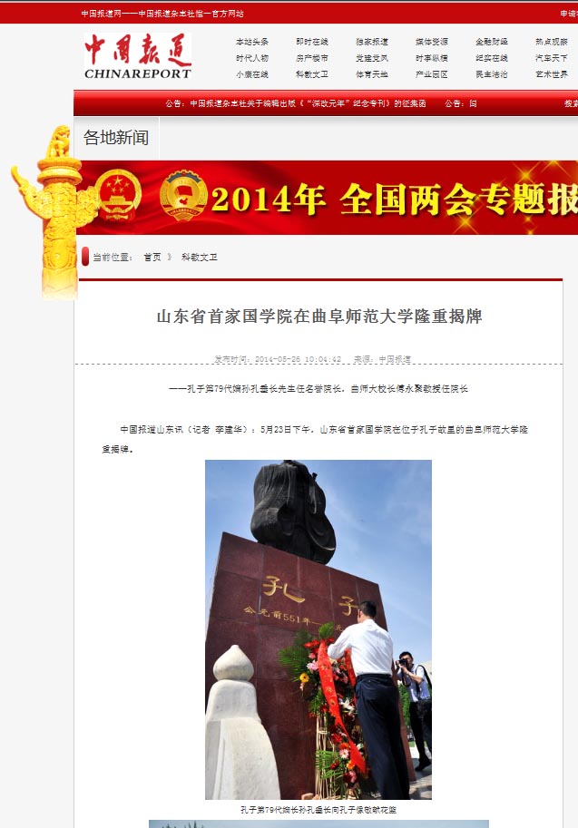 中国报道:山东省首家国学院在半岛在线体育网隆重揭牌