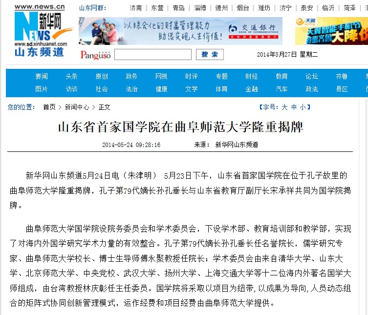 新华网:山东省首家国学院在半岛在线体育网隆重揭牌