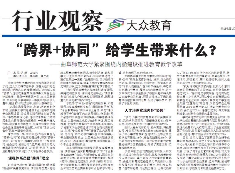大众日报:“跨界+协同”给学生带来什么?——半岛在线体育网紧紧围绕内涵建设推进教育教学改革