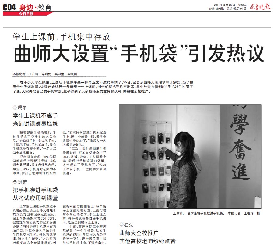 齐鲁晚报:曲师大设置“手机袋”引发热议