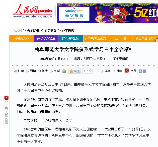 人民网:半岛在线体育网文学院多形式学习三中全会精神