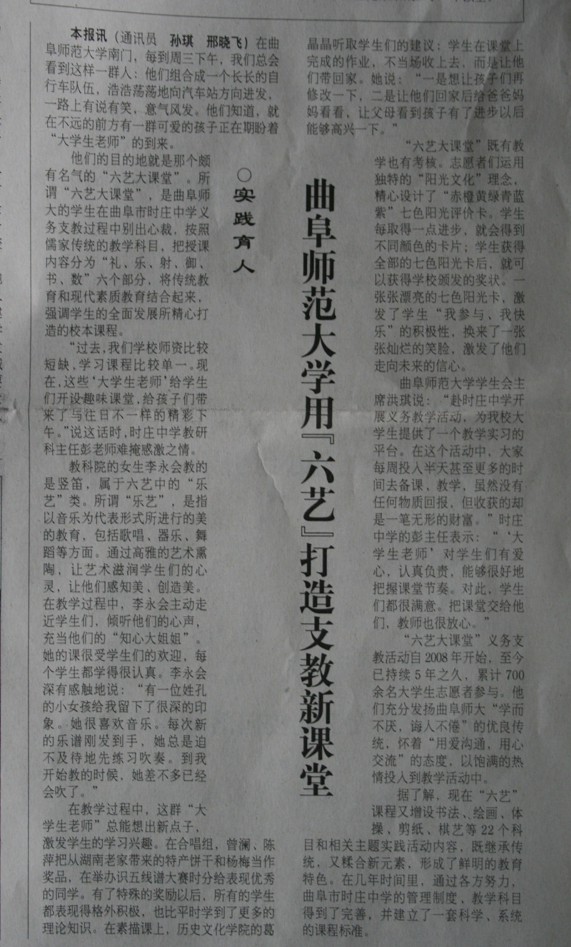 山东教育报:半岛在线体育网用「六艺」打造支教新课堂