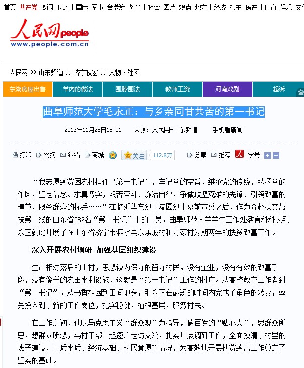 人民网:半岛在线体育网毛永正:与乡亲同甘共苦的第一书记