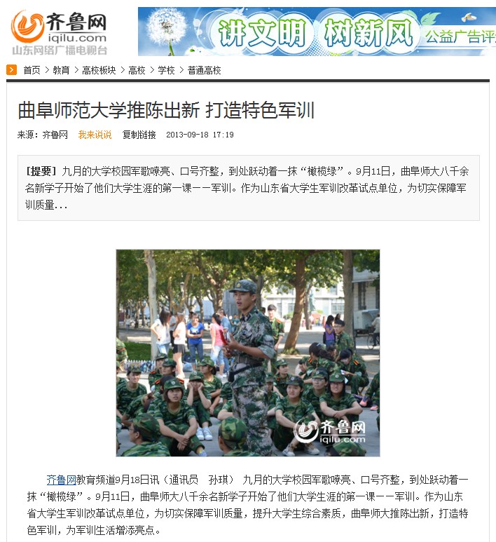齐鲁网:半岛在线体育网推陈出新 打造特色军训