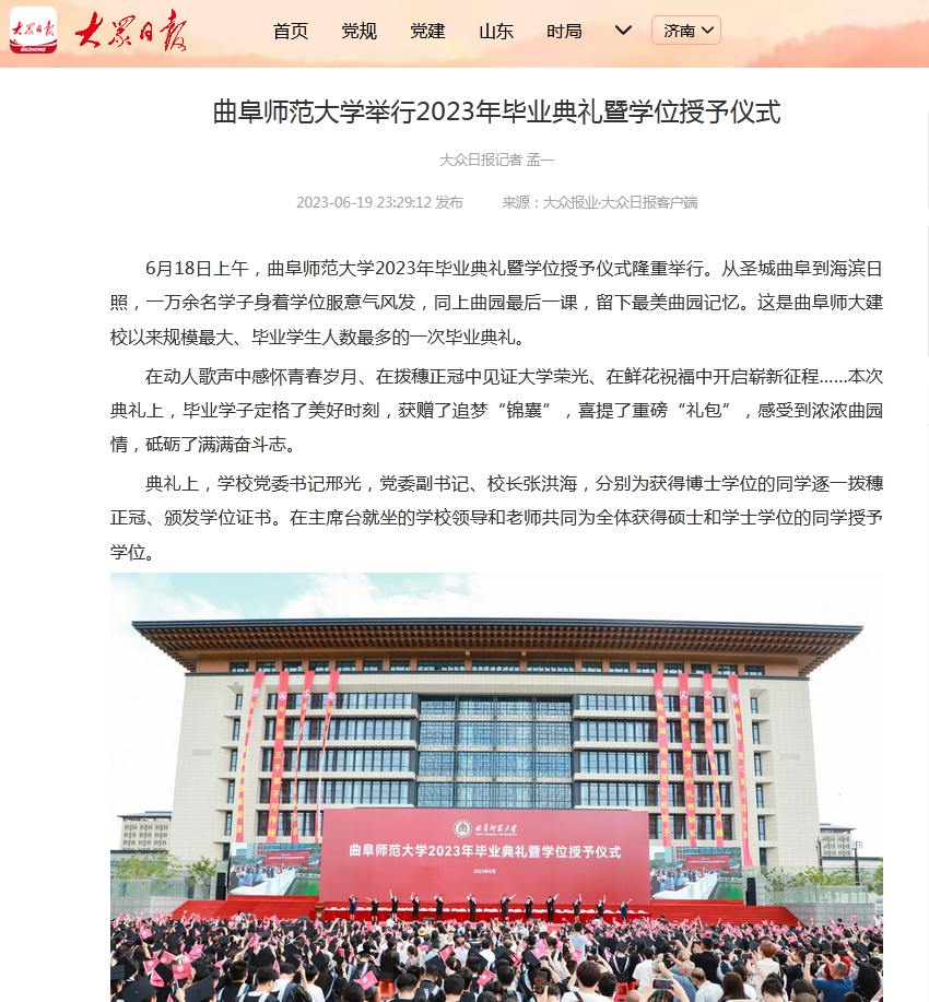 【大众日报】半岛在线体育网举行2023年毕业典礼暨学位授予仪式