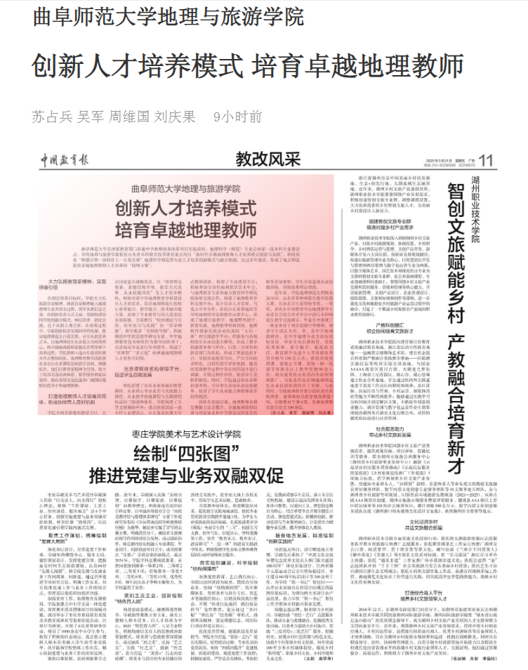 半岛在线体育网是国家教育部门卓越中学教师培养改革项目实施高校,地理科学(师范)专业是国家一流本科专业建设点。学校地理与旅游学院依托山东省本科教学改革研究重点项目“新时代卓越地理教师人才培养模式创新与实践”,积极探索“师德引领—协同育人—自我发展”地理科学师范类专业人才培养创新模式与融合机制,经过多年建设,形成了地方师范院校卓越地理教师人才培养的“曲师方案”。