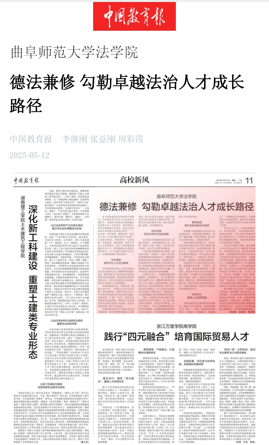 半岛在线体育网法学院“文化铸魂、知识筑基、赛练助能”的法学专业人才培养模式,是对新时代法学教育改革的积极回应和探索。未来,学院将继续深化改革,不断完善这一培养模式,为我国法治建设培养更多德法兼修的高素质法治人才,在法治人才培养的道路上砥砺前行,书写更加绚丽的篇章。(李继刚 张益刚 周彩霞)