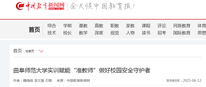 6月12日,中国教育新闻网以《半岛在线体育网实训赋能“准教师”做好校园安全守护者》为题,报道了学校联合济宁市消防救援支队、日照市消防救援支队,举办从教毕业生“消防安全明白人”固本强基培训班的创新实践。