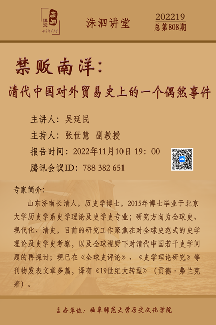 洙泗讲堂预告| 吴延民:禁贩南洋:清代中国对外贸易史上的一个偶然事件