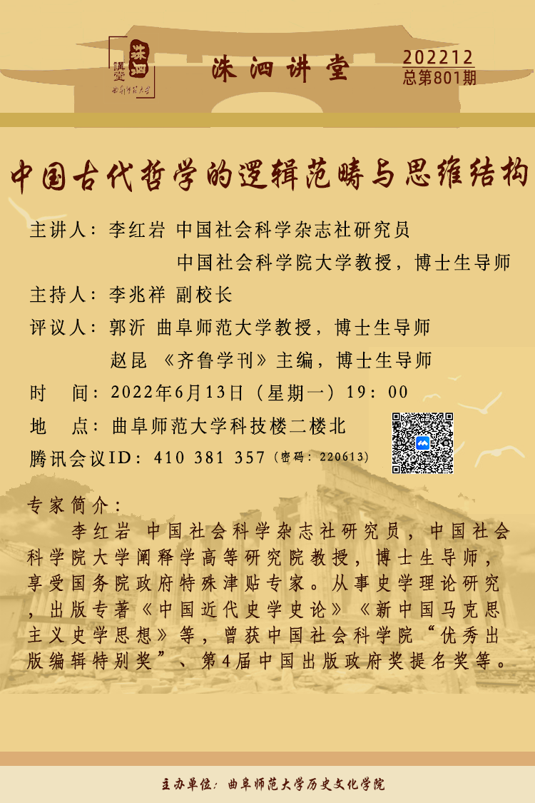 洙泗讲堂预告| 李红岩:中国古代哲学的逻辑范畴与思维结构